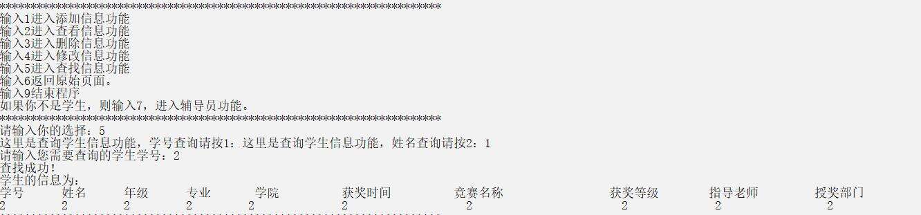 printf("**************欢迎进入学生信息获奖系统********************\n");