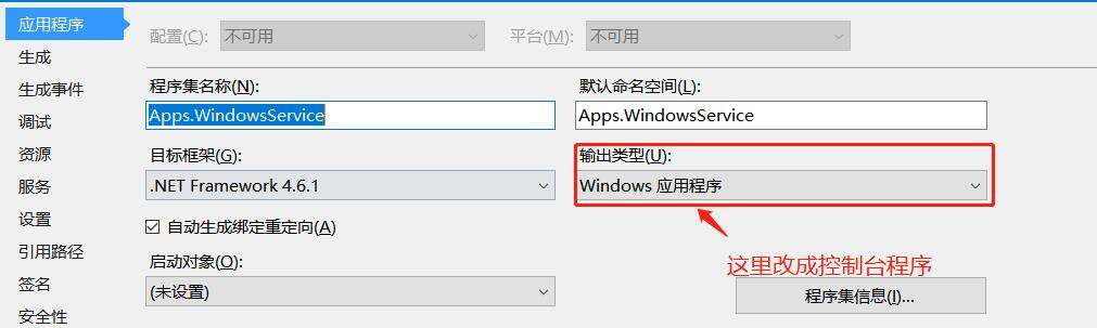 1、更改项目 应用程序——输出类型——windows应用程序 改为 控制台应用程序