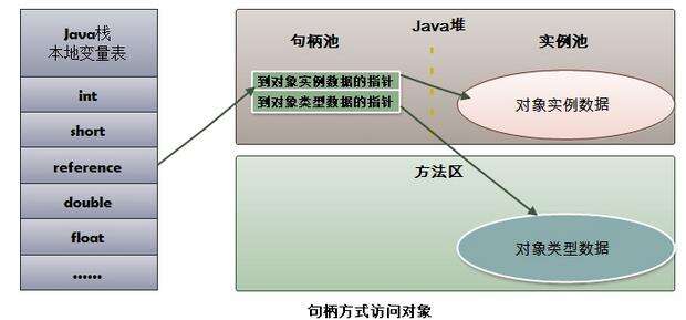 对象访问方式,有句柄,可以屏蔽对象实际地址的改变(gc时对象地址经常会改变);也可以直接访问数据(如Hotspot),优势速度快。