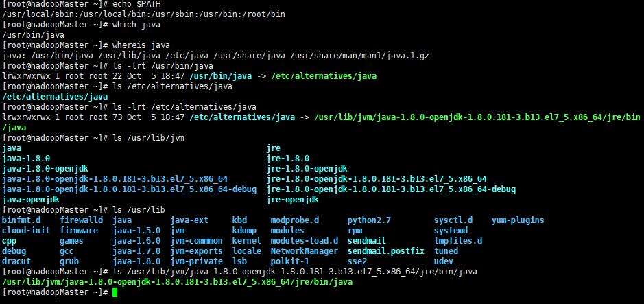 java-1.8.0-openjdk-1.8.0.181-3.b13.el7_5.x86_64是JDK的默认路径(以下是目录)