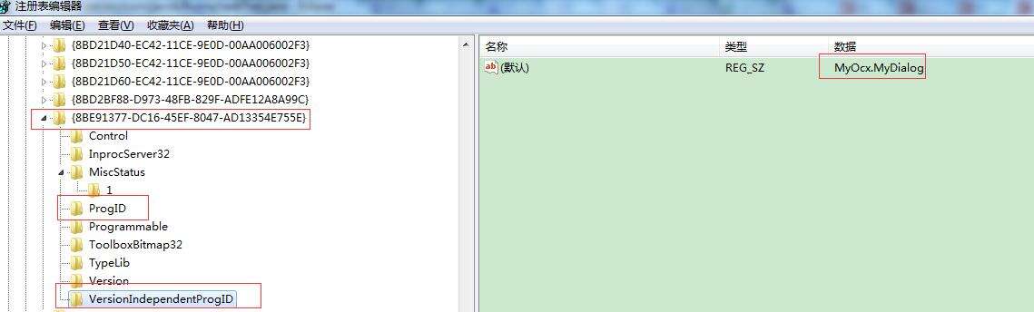 // 注册表中取得注册MyOcx.dll的ProgId,或clsid。