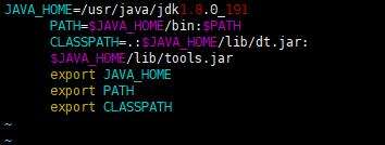 复制好了以后进行解压,同样使用解压语句 tar -zxvf jdk-8u191-linux-x64.tat.gz,解压好了之后,整个java的文件就算好了,还差最后一步就是配置Java的环境变量,下面使用图片展示,首先使用命令 vi /etc/profile